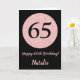 Cartão Feliz 65º aniversário, preto e Rosa, rosa Dourado