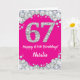 Cartão Feliz 67.º aniversário, rosa quente e brilho prate