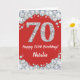 Feliz 70 Aniversário Red e Silver Glitter Card com nome personalizado. Para mais personalização, clique no botão "Personalizar" e use nossa ferramenta de design para modificar este modelo.