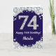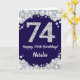 Cartão Feliz 74.º aniversário Marinho Azul e Silver Glitt