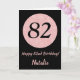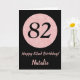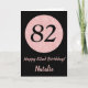 Cartão Feliz 82º aniversário, preto e Rosa rosa Dourado