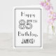 A frente deste elegante deco de arte dos anos 30 do 1920 de aniversário inspirou o design de cartão de saudação com tema de aniversário com a mensagem "Feliz 85º Aniversário," e um nome de destinatário personalizado. O número "85º" na frente tem um aspecto com rico, e há também uma borda com várias linhas. O dentro apresenta uma mensagem de saudação de aniversário personalizada, ou talvez possa ser apagado e deixado o vazio se uma mensagem for escrita manualmente. Um cartão de cumprimentos de aniversário, personalizável como este, pode ser enviado para celebrar o oitenta e cinco anos de alguém. [~Z0000641]