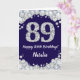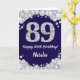 Cartão Feliz 89º aniversário Marinho Azul e Silver Glitte