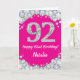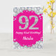 Cartão Feliz 92º Aniversário, Rosa Quente e Silver Glitte