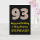 A frente desta divertida e simples carta de saudação de aniversário de 25 de dezembro, temerária de Natal, apresenta um grande número "93" com um padrão verde, branco e vermelho de listras, juntamente com a mensagem "Feliz 93º aniversário e Feliz Natal", e um nome personalizável. O fundo da frente é preto colorido. O dentro apresenta uma mensagem de saudação de aniversário editável, ou talvez pudesse ser apagado e deixado o vazio se uma mensagem fosse escrita manualmente. Um cartão de aniversário personalizado como este pode ser uma forma divertida de enviar desejos de aniversário a alguém que comemora o seu 93º aniversário e que também foi nascer no Dia de Natal (25 de dezembro). [~Z0000405]