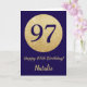 Cartão Feliz 97º aniversário Marinho azul e Dourado brilh