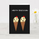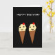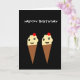 Feliz cartão de aniversário com uma linda sorvete de cone de arte no cobrir. Este cartão pode ser bom com um cartão-presente para o seu sorvete favorito. Arte por abundância
