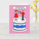 Um desenho animado de gêmeos masculino e feminino em pé no topo de um bolo gigante bebendo coquetéis. A mulher está dizendo 'Feliz Aniversário ao meu irmão gêmeo'.