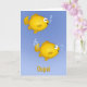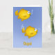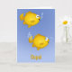 Peixe feliz bonito andando e depois tem um pequeno acidente. Oops! É uma Oops que esqueci seu cartão de aniversário!