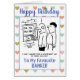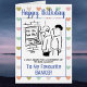 Cartoon Banker. Máquina de pontos de caixa ri de um cliente. Personalize com a sua escolha de texto e mensagem dentro.