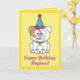 Um buldogue de desenho para um sobrinho está vestido para uma festa de aniversário neste cartão de aniversário colorido e feliz. Para itens correspondentes, digite "penguincornerstore buldog" no bar de pesquisa do Zazzle.