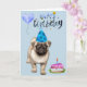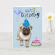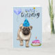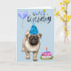 Cartão Feliz Aniversário Cachorro Pug Filhote Aquarela