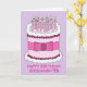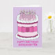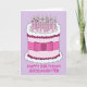 Um grande bolo de aniversário rosa e mauve com as palavras "Feliz Aniversário, Padrinha".