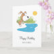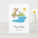 Este doce Cartão de Aniversário de Feliz Feliz Aniversário apresenta uma ilustração cartoonômica da pesca engraçada "Puppy". O Cachorro Angler fica com a vara de pesca, além da água à espera do peixe. A ilustração é feita em cores quentes: marrom, verde, amarelo e azul macio. Cartão de excelente para enviar a qualquer pessoa, especialmente se for um amante de cão e fã de pesca. Você pode personalizar o texto facilmente usando ferramentas online do Zazzle.