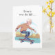 Adicione um nome ao cobrir desta engraçada carta de saudação de aniversário da colina com uma ilustração digital de um senhor mais velho andando de skate. Um dentro de skate divertido. Art, image e verse copyright Shoaff Ballanger Studios, 2023.