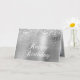 Folha esparsa, brilhante e brilhante cinza de prata, cor de falso, ao fundo. Adicione duas das suas próprias fotos para criar o seu próprio cartão de aniversário. O texto gráfico na frente diz "Parabéns" em um roteiro de caligrafia glamourosa.