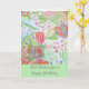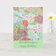 Parabéns. Flores abundam nesta brilhante e alegre design de flores. Corais e azuis nadando na água.