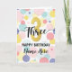 Cartão Feliz aniversário de 3 anos Pastel Rainbow Dourada
