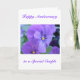 Cartão Feliz Aniversário de Casamento com violetas roxas tiradas na primavera. Adequado para qualquer pessoa da sua família (pais, tias, tios, irmão, irmã, sogros) Clique em "Personalizar" para alterar as palavras ou deixar como está.