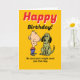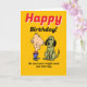 Esta gratificante carta de saudação de aniversário foi projetada com uma mulher que recentemente se divorciou ou se separou, tendo em mente. O exterior apresenta desenhos coloridos de um homem e de um cão, através dos quais o remetente promete à mulher de aniversário um "cão" se o receptor do solteiro é simpático. A dentro identifica surpreendentemente o "cão" como um homem, com quem o receptor pode se associar ao seu ex-marido, ou ex-namorado. A expressão humorística no cartão capitaliza sobre a tendência familiar das mulheres de se referirem a homens que são infiéis, femininos ou simplesmente confusos em relações românticas como "cães".