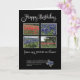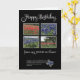 Um cartão de aniversário para um amigo de alguém que mora no Texas tem quatro fotos de papoilas e bluebonnets. O verso dentro pode ser alterado clicando em "Personalizar este Modelo"