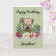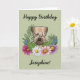 Cartão Feliz Aniversário de Terrier Floral Feliz, Roda En
