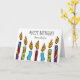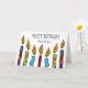 Cartão de aniversário alegre e caprichoso de todos nós com velas coloridas e brilhantes. Perfeito para uso pessoal e comercial.