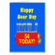 54º cartão de aniversário. Um cartão de aniversário engraçado mostrando velas de aniversário queimando em uma lata de cerveja. Deseje cerveja feliz com este cartão de cerveja alegre.