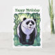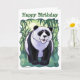 Parada Animal Um Cartão de Aniversário Personalizado Feliz de Panda Feliz de Panda Feliz de Aniversário é para o seu lado divertido com a nossa arte original de um urso panda caprichoso parado em pé numa floresta de bambu sombria com um céu amarelo, verde, com um sol amarelo pálido e uma bela borda verde escura e ondulada. Pintado pelo talentoso artista infantil Traci Van Wagoner, nosso divertido animal selvagem com roupas de festa é perfeito para amantes de ursos panda de todas as idades. Dentro, você encontrará uma mensagem personalizável divertida. Junte-se à Parada Animal e jogue um balde cheio de animais com nossas cabeças divertidas e caudas panda ursos com o tema festa de aniversário. Divirta-se!