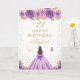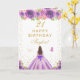 Cartão Feliz Aniversário do Brunette Hair Girl Purple Flo