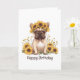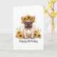 Cartão Feliz Aniversário do Cachorro Francês Girassóis