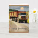 Este cartão de aniversário mostra um caminhão de lixo que vai a uma estrada rural.