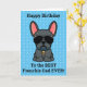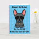 Cartão Feliz aniversário do cão azul Buldogue Francês
