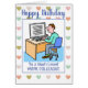Homem trabalhando num computador. Cartão de aniversário do Colega de Trabalho para um macho. Personalize com seus próprios detalhes e mensagem