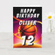 Bola de basquete junta-a a uma Carta de Aniversário Feliz Esportivo. Este design moderno tem o texto "Feliz aniversário", um nome personalizado, idade e bola de basquete num fundo vívido e vibrante. O tema do basquete o torna perfeito para o aniversário de um fã de basquete. Personalize com o seu nome, a sua idade e o seu aniversário desejam dentro do cartão.
