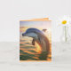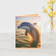 Este cartão de aniversário apresenta um golfinho feliz tocando no nascer do sol.