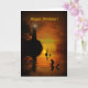 Um cartão de aniversário feliz, de fantasia costeira, com um farol, uma sereia e um golfinho, todos silenciados à medida que o sol cai. Uma imagem fantástica só para desejar a alguém um dia mágico no seu aniversário!