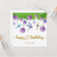 Cartão Feliz Aniversário Drena Voas Selvagens Flores Aqua