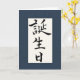 Um lindo pergaminho japonês com a caligrafia kanji para o aniversário e a palavra Happy na frente. Em uma textura de "seda crua" em uma profunda sombra de lacre, este incrível design é o cartão de aniversário personalizado perfeito. Adicionar texto, alterar layout e plano de fundo.