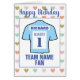 Cartão de aniversário de fã de futebol com camisa azul clara. Cartão de aniversário para um fã de futebol. Camisa de fã de futebol em azul-céu. Personalize com seus próprios detalhes e mensagem. Cartão de aniversário ideal para um fã de futebol. Feliz fã de futebol de aniversário. Cartão para um apoiante furioso.