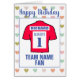 Cartão de aniversário para um fã de futebol. Camisa de fã de futebol em vermelho. Personalize com seus próprios detalhes e mensagem. Cartão de aniversário ideal para um fã de futebol. Feliz fã de futebol de aniversário. Cartão para um apoiante furioso.