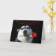 Um cartão de Feliz Aniversário super fofo especificamente para sua maravilhosa Filha e Genro. Um husky fofo segurando uma rosa, simplesmente um cartão divertido!