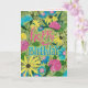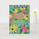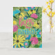 Cartão Feliz aniversário floral verde e rosa