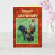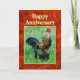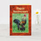 Cartão Feliz Aniversário Galo e Galinha Penas Vermelhas