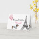 Este design de Paris chic apresenta a torre Eiffel com um dachshund e balões cor-de-rosa brilhantes com bordas brilhantes de coração cor-de-rosa. Personalize facilmente este cartão de aniversário feliz com um nome, endereço e saudação de aniversário em na moda preto e rosa.