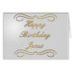 O feliz aniversario Jesus, em letras do ouro em um creme coloriu o fundo,