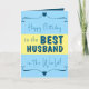 Celebre seu marido maravilhoso com este cartão de aniversário! Diga "Feliz Aniversário para o melhor marido do mundo" em estilo e adicione sua própria mensagem especial para tornar seu dia mais especial. Seja ele o amor da sua vida, seu parceiro em crime, ou simplesmente seu melhor amigo, este cartão é perfeito para deixá-lo saber o quanto ele significa para você. Faça-o sorrir, rir, ou até derramar uma lágrima feliz com seu toque pessoal. Mostre seu apreço por todo o amor, risos e momentos inesquecíveis que você compartilha. Afinal, ele merece o melhor! Cores: azul / amarelo
