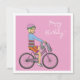 Cartão Feliz aniversário - Menina numa bicicleta rosa