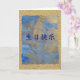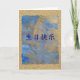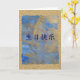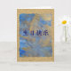 Os caráteres chineses para "o feliz aniversario" (Sheng Ri Kuai Le) são rotulados no azul em um fundo textured de cursos da escova do azul e do ouro