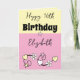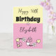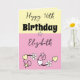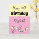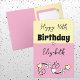 Cartão Feliz aniversário, nome cor-de-rosa amarelo